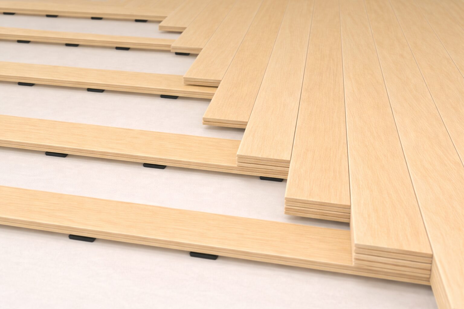 Built on a cross-laminated plywood core, the low-profile structure features a laminated engineered-hardwood surface and sports-grade coating to improve scratch and scuff resistance. It also helps reduce warping under normal humidity and temperature changes, making it ideal for school gyms, training rooms, and community multi-purpose spaces.